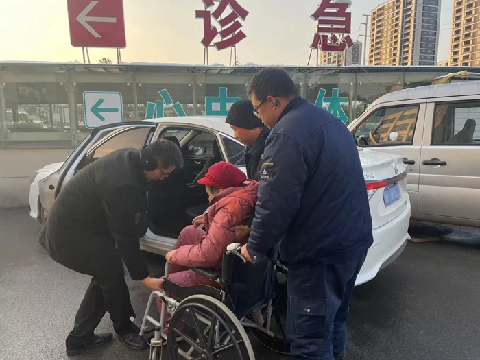 Qiao Yi reported Grandma Wang’s call to the management with no delay, and the service center undertook the help immediately. Order director Shu Wei and steward Yu Guiqiang took a wheelchair from the service center to Grandma Wang’s home and carefully put Grandma Wang in the wheelchair. At this time, Grandma Wang’s nearest family member also arrived in time. Accompanied by the receptionist Ni Xuewei, Grandma Wang was sent to the hospital in a car prepared by the property management team.