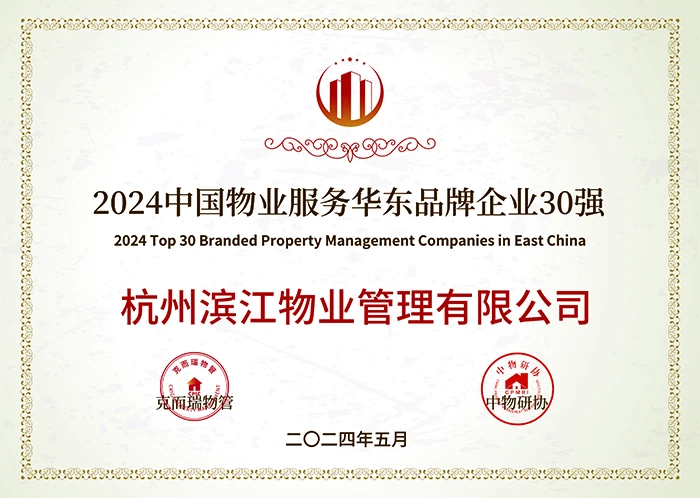 Binjiang Property was honored with several prestigious awards at this summit, including “2024 Top 100 Chinese Property Service Providers”, “2024 Top 100 Chinese Property Service Providers in Brand Value”, “2024 Top 20 Chinese High-End Property Service Providers”, and “2024 China Leading Enterprise in Real Estate-Property Collaborative Service Force”.