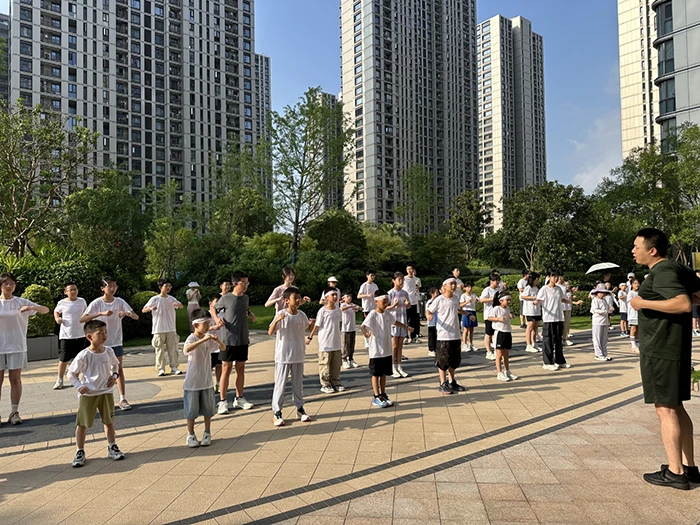 At 7:30 AM on August 1st, the children's running team of Yueqing Golden Garden kicked off their morning run in the West Area. With the sun just rising and a gentle breeze blowing, 150 young runners aged 6 to 15 arrived early at the gathering point to check in and warm up. Dressed in custom-made sports T-shirts provided by the property management team and wearing headbands, the runners were brimming with energy.