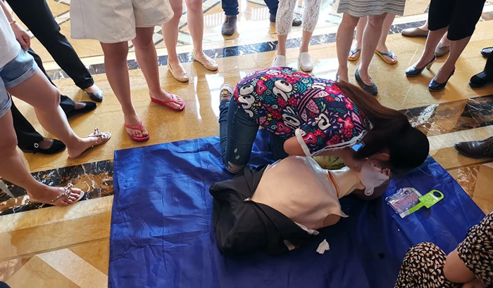 This training invited first-aid specialists to explain first aid knowledge, and effectively improved the present trainees’ cardio-pulmonary resuscitation skill and AED application skill, and their ability of saving others and themselves.