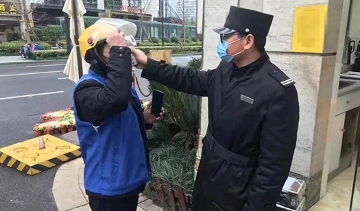 It is about on January 25th that Binjiang Property service centers of various communities initiated closed-off management which does not allow entry of takeout deliverymen, couriers and agency workers and requires proprietors to pick up things at the gate in person. Besides, the sentries will also detect the body temperature of takeout deliverymen and couriers at the gate and report abnormal body temperature immediately if any.