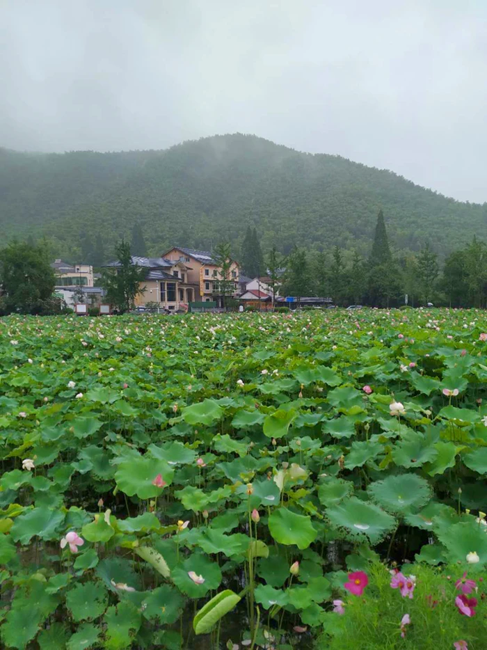 When got off the bus at the entrance, the group were attracted by the beauty of a summer southern village where green is everywhere and lotus in the pool are in full bloom. Along the wide and plat road into the village, there is a giant tawny stone engraved with “绿水青山就是金山银山(lucid waters and lush mountains are invaluable assets)” standing at the entrance. It is exactly the well-known park of “Waters and Mountains” site.