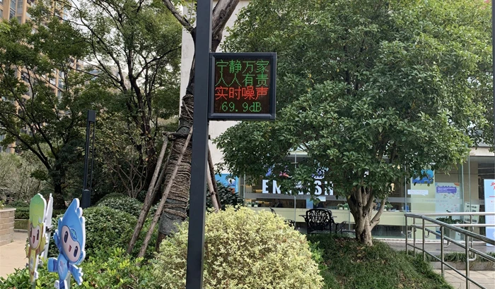 在万家星城一期,小区大门电子屏、单元厅电视屏、宣传栏,不断投放“宁静小区”线下宣传,并结合社区线上宣传联动,号召业主共同守护小区的这一片宁静。小区还设置了噪声监测布点,依托噪声地图、噪声溯源等信息化手段,加强噪声污染防治精准化、数智化管控。
