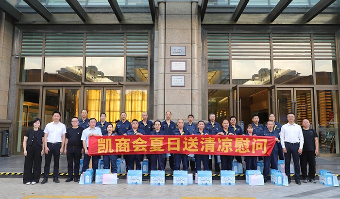 滨江物业一线员工代表来自售后维修中心的20名员工,他们服务于基层,专攻各类维修、油漆、石材、外墙、木工等。高温期间,他们挥汗如雨,以精湛技艺确保工程维修质量。他们习惯于默默无闻作业一线,凯商会领导的清凉慰问犹如一股涓涓溪流入心田,让他们立足岗位、服务好一线的信心倍增。