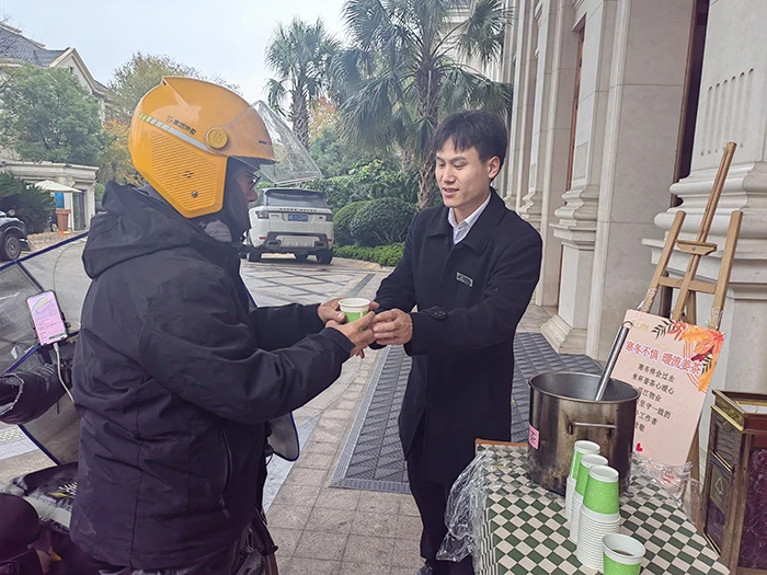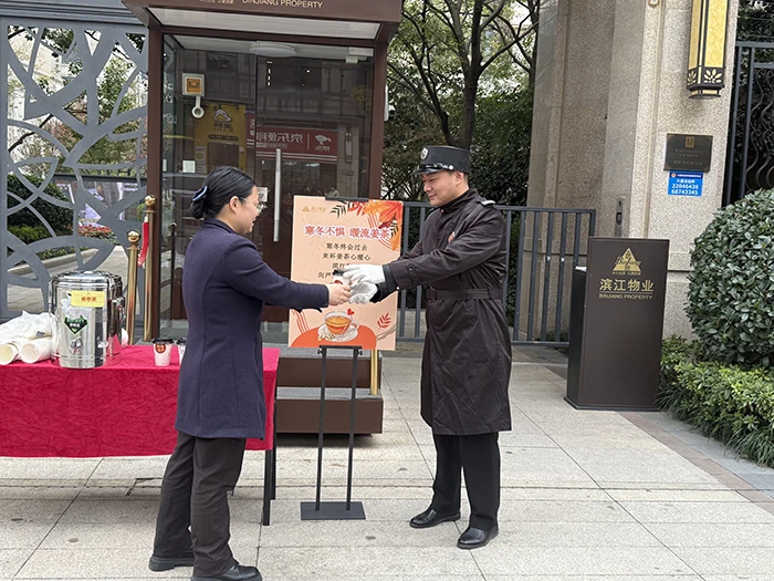 一线滨江物业人用爱心驱散寒冬凛冽,一杯杯姜枣茶构筑成一座温馨港湾,让这股暖流成为冬日里最动人的主旋律吧!