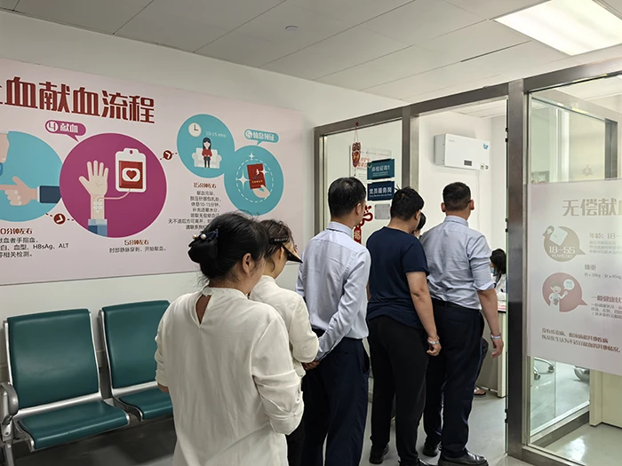 第二天,第一批员工到达浙江省血液中心滨江院区献血1100ml, 他们是物业主任王小华、姜文正,主任助理冯瑜,金涛同志。