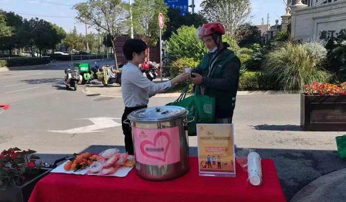 On November 2nd, the property service center of Hangzhou The City Star became one of the first several service centers that set up a filling station for couriers. It is the second time that The City Star has participated in the loving service program for couriers. A simple cup of tea for this autumn could be a perfect choice to soothe both the exhausted body and mind of couriers.