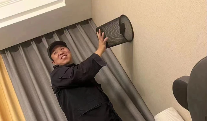 At 1:30 AM on the third day, the service center again received a call for help from Ms. Sun, and the staff on duty instantly sent the patrolman Gao Binqi to handle the bat. Shortly, Gao Binqi arrived. He comforted the proprietor first and guaranteed that he would handle it well. After some effort, the bat was finally caught in a trash can.