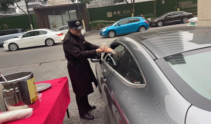 Furthermore, caring for the delivery workers and many other outdoor workers is also a consistent action of Binjiang Property's various projects. A deliveryman who received the Laba porridge from College View Garden's steward praised, "The Laba porridge is really good, so warm and considerate!" In addition, stewards of College View Garden also distributed Laba porridge to the frontline members standing guard in the cold wind to keep them warm.