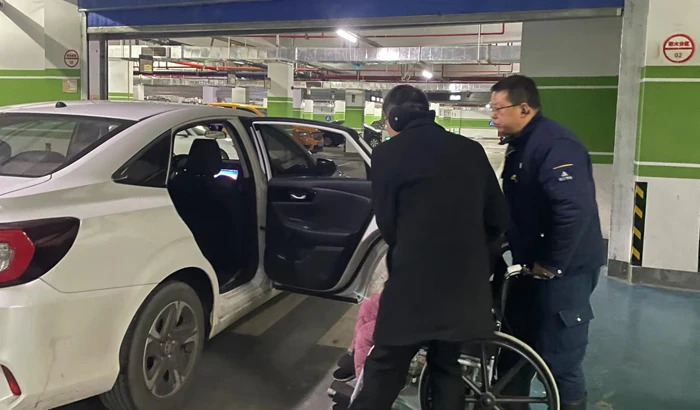 Qiao Yi reported Grandma Wang’s call to the management with no delay, and the service center undertook the help immediately. Order director Shu Wei and steward Yu Guiqiang took a wheelchair from the service center to Grandma Wang’s home and carefully put Grandma Wang in the wheelchair. At this time, Grandma Wang’s nearest family member also arrived in time. Accompanied by the receptionist Ni Xuewei, Grandma Wang was sent to the hospital in a car prepared by the property management team.