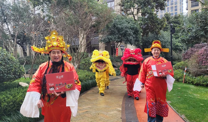 At the Lantern Festival event of Hangzhou Double Bay International City, the God of Fortune appeared to send the blessings of the Year of Dragon with the dancing lion. The property management service center collected over 500 riddles for the event and also prepared freshly cooked tangyuan, lantern DIY, and prize-winning games for proprietors to fully engage in the event and share the joy of the festival.