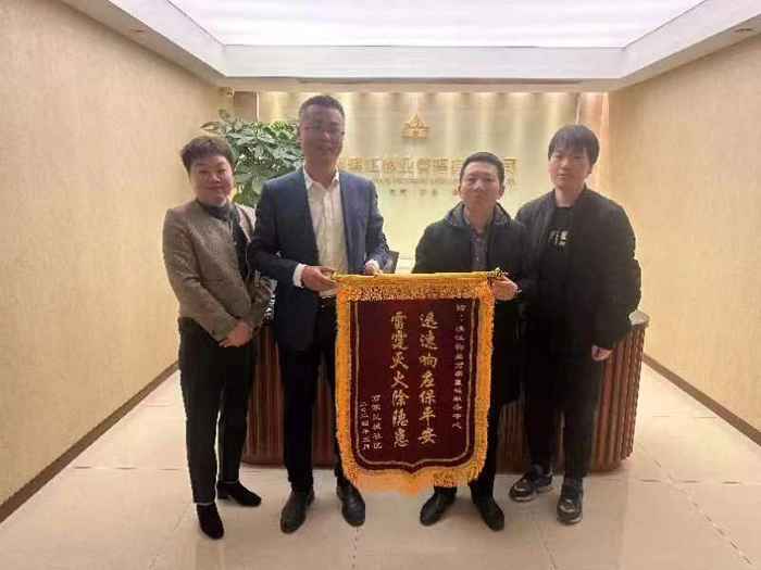 No casualties and property loss were caused by the fire accident, which was disposed and contained in time. The favorable outcome cannot be separated from the deliveryman’s timely discovery and reporting, and the frontline staff of Binjiang Property who gathered all workers possible upon receiving the report. The incident reflects the quick response and wholehearted service attitude of the whole Hangzhou City.