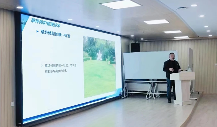 Centering on habits and characteristics of plants, key and difficult points of disease and insect pest control, lawn mowing standards, the use norm of greening maintenance devices, and the company’s regulations on greening maintenance quality, the three-hour greening training provided abundant practical knowledge for all trainees.
