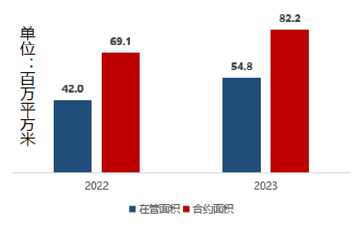 The continuous expansion of Binjiang Property’s management scale is a major contribution to the continuous improvement of its business performance. By the end of 2023, the area managed by Binjiang Property has increased by 30.7% compared to the previous year, reaching 54.8 million square meters; at the same time, the contracted area has also achieved a growth of 19.0% and reached 82.2 million square meters. These growths not only highlight Binjiang Property's extensive recognition and strong competitiveness in the market, but also lay a solid foundation for its future development.