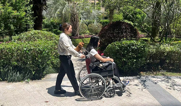 After learning the worries of Ms. Jiang, the steward Xiaochun and the evening shift of the order team voluntarily shouldered the task of escorting Ms. Jiang to and from work. Starting from May 6th, whenever Ms. Jiang needed to go out, Xiaochun would promptly bring the wheelchair from the service center to Ms. Jiang’s doorstep, carefully assist Ms. Jiang into the wheelchair, push Ms. Jiang to the taxi pickup point at the main entrance, and help Ms. Jiang get into the tax. The evening shift order team members were responsible for picking up Ms. Jiang at the main entrance and sending her home.