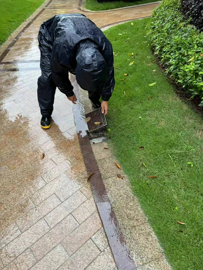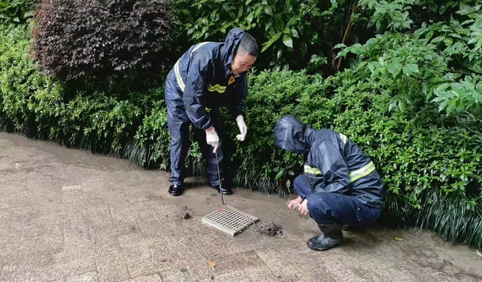 The flood prevention work is of the utmost urgency. In this critical battle against floods, Binjiang Property has strengthened the bottom-line thinking, and the staff of various service centers have prepared flood prevention supplies in advance and hold fast to their positions at the frontline to ensure effective drainage and flood prevention. The drainage facilities and equipment are inspected if they are in good condition, the roofs and platforms are cleaned to prevent gutters and sewer pipes from blockage, and the drainage ditches, inspection wells, and drainage pumps in the basement were carefully checked one by one to avoid rainwater backflow and drainage difficulties.