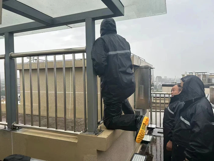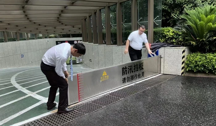 Many projects under the management of the Southern Zhejiang Branch have organized flood prevention drills during the Mei-yu period, aiming to enhance the emergency response of employees. Instructed by meteorological alerts in Jinhua, the service center of Jinhua Wanhu Square organized flood prevention inspections at the main entrances of the residential quarters, rooftops, and emergency warehouses to eliminate potential hazards.