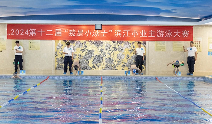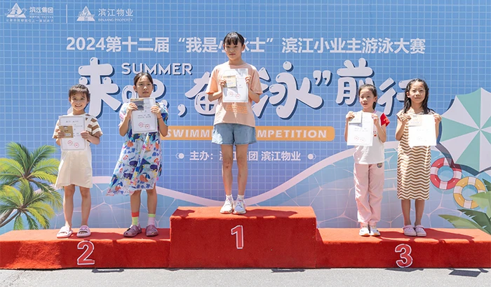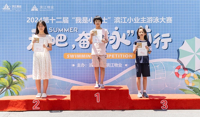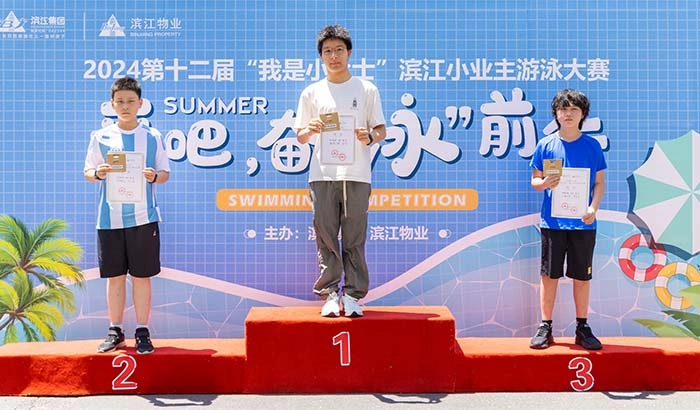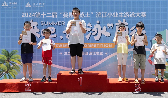 On July 6th, the 12th “I’m a Swimmer” swimming contest in 2024 for Binjiang Property’s young proprietors was held in Golden Dawn Phase II in Hangzhou. Early in the morning, nearly a hundred young contestants, accompanied by their parents and Binjiang Property’s property management staff, took buses from various districts of Hangzhou and gathered at the competition venue.