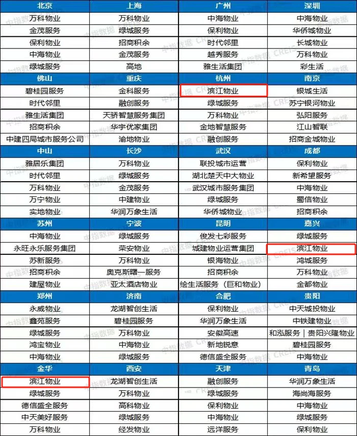 Binjiang Property is honored as the 2024 China Outstanding Enterprise of Urban Property Service Satisfaction and leads in rankings in Hangzhou, Jinhua, and Jiaxing with an exceptional overall result.