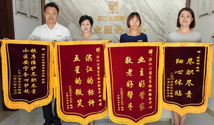 In Shanghai Park One, an elderly proprietor who was later diagnosed with a sudden onset of cerebral infarction was timely sent to the hospital by the property management staff. Thanks to the property management staff’s prompt response to the request for help from the elderly proprietor’s family and the timely medical transport, the elderly proprietor’s condition was brought under control. After the elderly proprietor was discharged from the hospital, his son expressed his deepest gratitude by presenting a silk banner to the service center, the customer service director, the steward, and the order team respectively, and praised, “Binjiang Property provides the best services and is definitely the best property management team I’ve ever known.”