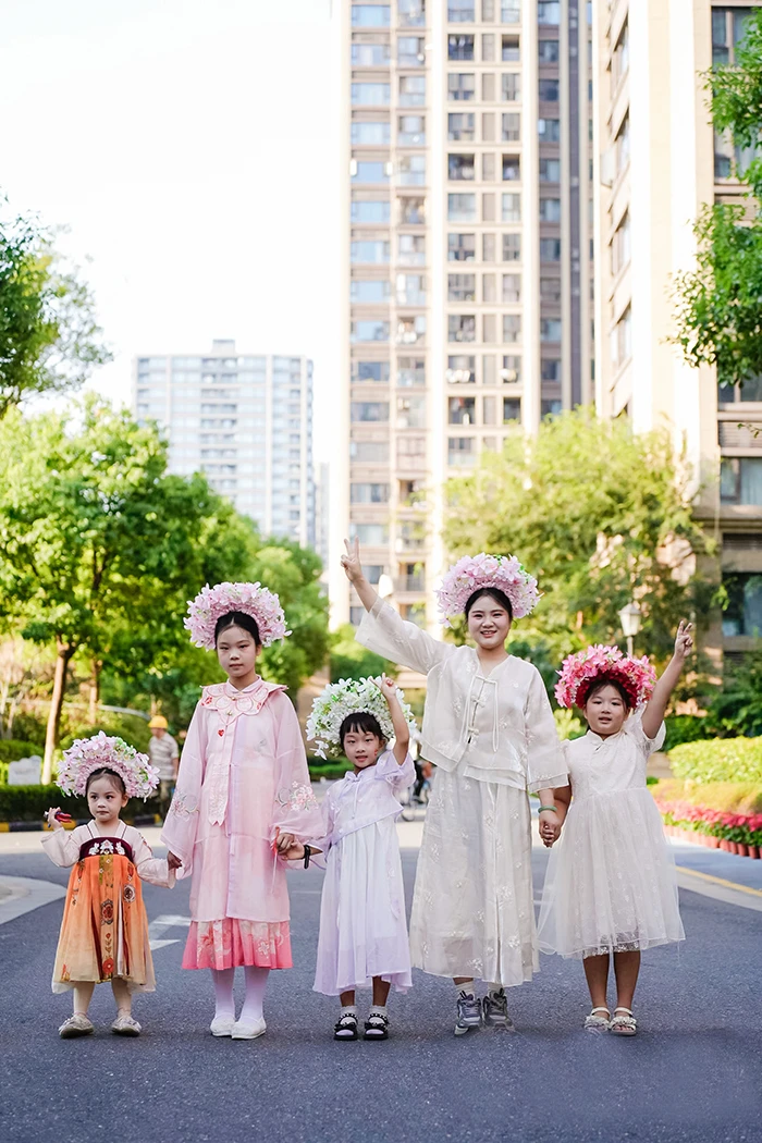 It is the third time that Binjiang Property has organized a large-scale golden autumn evening party at Hangzhou Lansong’aofu since its entry into the residential quarter. The biggest feature of this year’s evening party is Chinese-style elements. Programs showcasing traditional cultures such as Yue opera, pipa, calligraphy, and fan dance in traditional Mamianqun (horse-face skirts) were performed and well received. Many children and adults attended the evening party in traditional Hanfu and enthusiastically experienced zanhua (floral headdress), fully enjoying the evening party like traveling back to ancient times.