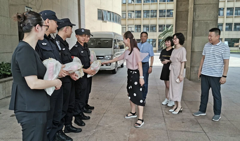 On July 26th, leaders of Jianggan District Organs Affairs Administration Center, despite the intense heat, visited and personally sent out coolers and heatstroke preventing medicines to the front-line property management staffs of Jianggan District Government Building Service Center.