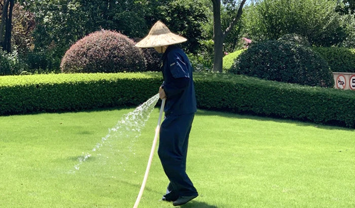 Continuous hot weather and the eastward marine airflow bring Hangzhou the most beautiful sky of the year with a stunning color of “West Lake Blue”. Looking at the golf court of Golden Coast, under the blue sky and white clouds is soft green grass carpeting the ground. When enjoying such beautiful scenery, please remember to say “thank you” to the property management staffs who pay efforts to the greening of the community day and night.