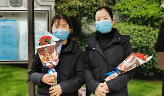 “We want to send some warmth and encouragement to those female soldiers standing fast to the frontline positions, because it is them who have been busy disinfecting, examining, publicizing and fulfilling their duties on the front line. They are the most beautiful people walking opposite the majority. This bunch of flowers also encourage us to fight for a better life”, said director Chen of service center of Jinhua Golden Landing