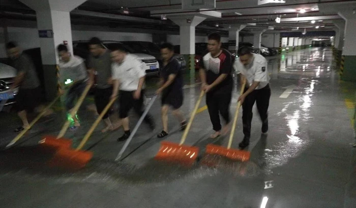 The flood situation is the order, and it is property management staff’s mission to stand their ground. At 20:30 that night, the heavy rain started to fall. Various service centers of New City Area of Binjiang Property immediately launched the emergency plan, uniting all departments and preventing the flood with all strengths.