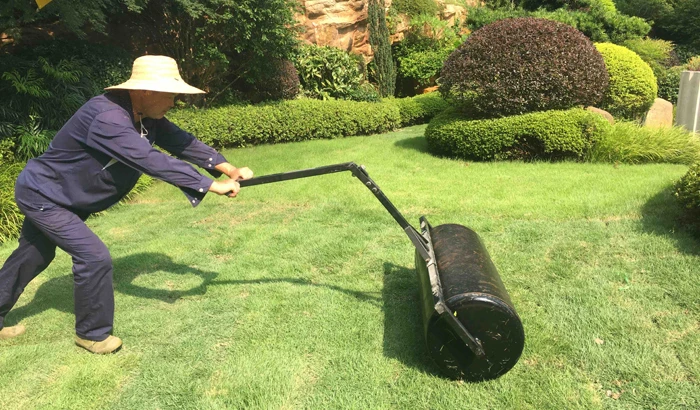 Laying turfs in echelon is for the purpose of quick and orderly work and helps improve the efficiency. Then, rollers weighing about 150kg each were used to flatten the lawn to give a tidy and artistical visual effect.