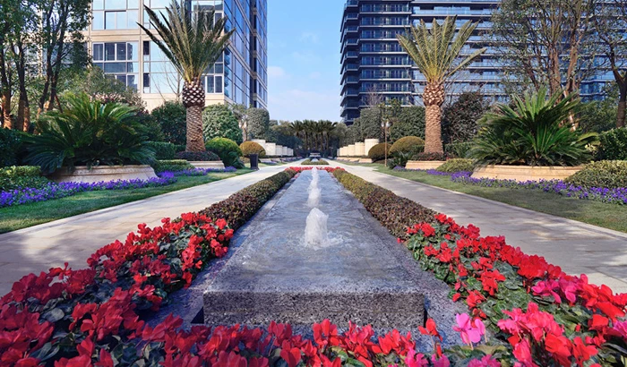 Garden landscape of Binjiang Property’s real estate, The One with particular, has impressed many visiting groups. In The One, there are carpets of green grass, luxuriant woods, and blooming flowers in four seasons such as azalea, Malus robusta Rehd., camellia, and so on.