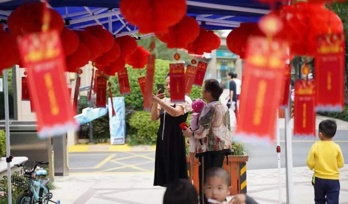 The annual “Mid-Autumn Festival and National Day Celebration” event of Hangzhou Lake Villa organized by the service center started at 14:00 on September 26th. Proprietors, guided by property management staff, received national flags and game coupons at the sign-in desk and entered the site where various activities such as lantern DIY and family ringtoss relay and many delicacies were waiting for them.