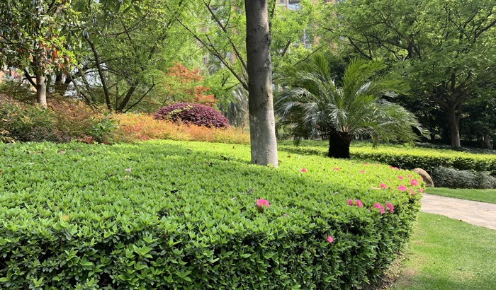 In this spring, we toured the 15-year-old Golden Garden at Qianjiang New City, which is said to be a forest-like residential quarter. After visiting various residential quarters, we find it is not an exaggerative expression. Golden Garden was famous for its tropical garden style when it was delivered. Tropical trees such as Washingtonia filifera and Phoenix canariensis at the gate and beside the pool are still full of vigor, giving the residential quarter a tropical ambience.