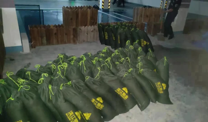 With the flood discharge and drainage by municipal personnel outside the residential quarter, the property management staff found it useful to pump water at night. At about 23:00, the water finally drained away through efforts of various parties, and the residential quarter restored its tranquility. By then, the height of the sandbag wall has reached 2.1m, and the property management staff has been working for continuous 15 hours.