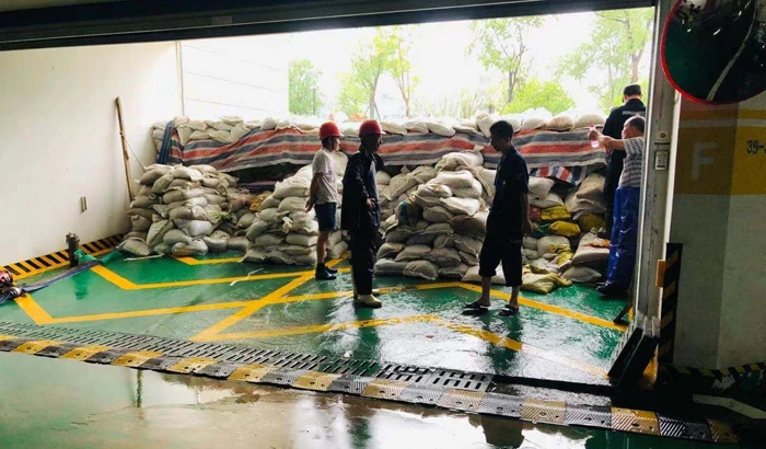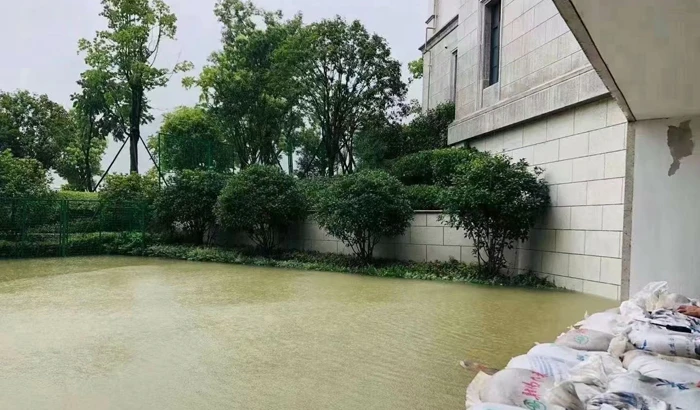 The typhoon In-Fa has now left Zhejiang. But, as large and lumbering as it is, it still has great influence on Zhejiang. At residential quarters of Binjiang Property, there were trees knocked down by the strong wind, and great ponding on the pavements due to the torrential rain. Binjiang property management staff built up protection walls in advance and successfully held the underground garages and saved the situation for proprietors regardless of all the wind and rain.