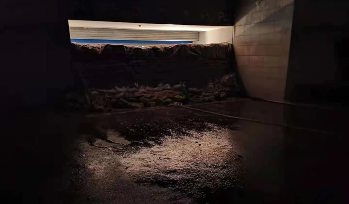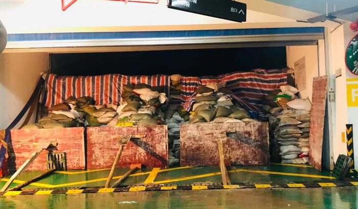 At around 15:15, the water rose to 1.2m, which was the unprecedented level. But thanks to everyone’s effort, the height of the sandbag wall was 1.6m then and effectively kept the water out of the basement.