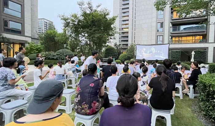 In Hangzhou Yupinwan, the service center screened My People, My Country and Leap in the east and the west area of the residential quarter respectively in July and attracted about a hundred of proprietors. To the delight of many proprietors, the summer open-air movie night brought back their joyful childhood memory. “It is a good way to appreciate red movies again and is very meaningful for the education of next generation.” “Today’s life has not come easily. We all should make our own contribution to the further development and improvement of our country.” Proprietors were very content with the red movie screening which satisfied the cultural and movie watching demand of proprietors and enhanced the neighborhood communication at the same time.
