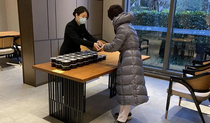 Property management staff of Hangzhou New City Square, which was just released from the lockdown, also shared warm Laba porridge with proprietors, showing their firm attitude that they will always stick to their positions. While not slacking off in epidemic control, the property management staff distributed 300 bowls of Laba porridge cooked by themselves. For elderly proprietors who live alone in the buildings, they specially gave a visit and delivered the delicious Laba porridge in person, which is very humanistic.