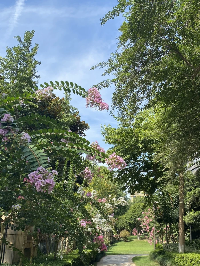 August is the best time of crape myrtle. In Golden Coast, there’re over one hundred of crape myrtles putting forth pink, white, and aubergine blossoms waving in the wind, vigorously and pleasantly.