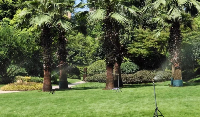 Regardless of the summer heat, the service center of Hangzhou Jiangnan Star insists on orderly and detail-oriented greening and plant maintenance and further enhances watering and disinfection. The one-meter-high rocket arm water sprinkler is used for 360-degree circular watering of the large lawn, reducing the burden of greening workers during hot hours of the day. The property management staff are creating a green, comfortable, and harmonious living environment with practical actions.