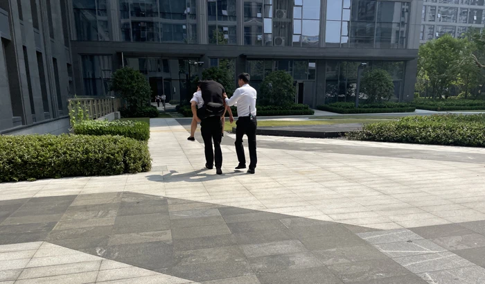 It turned out that the proprietors had a heart attack at home and laboriously called 120 by himself. To facilitate the rescue, the proprietor intended to go out and wait for the 120 at the south gate. But he had to stop and could hardly move any more when he got near Building 1. Fortunately, he was happened to be discovered by the steward who was on the way to his home. That’s why the steward’s voice appeared on the phone. Later, the steward supported Mr. Xu to the stone bench nearby, waiting for rescue.