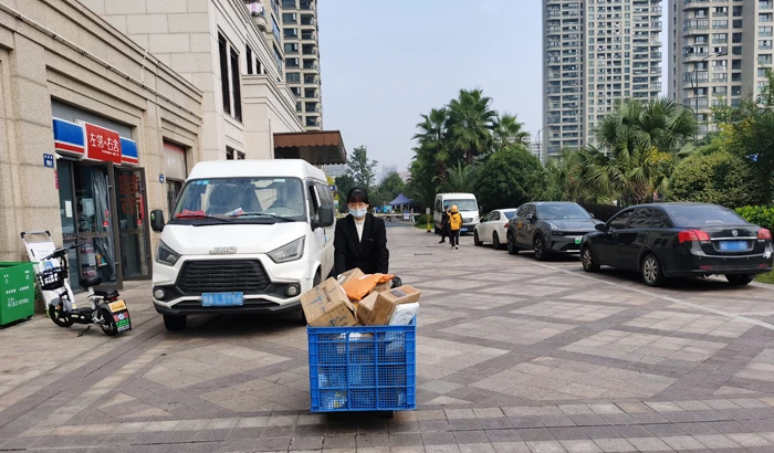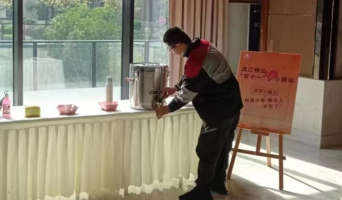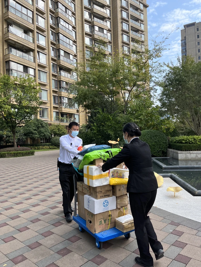 With the approval of proprietors committee, the property management staff of Hangzhou Jiangnan Star early built a package sorting hall for couriers and set up a courier station at the corner of the hall to provide mineral water, hot water, tea and drinks for couriers. According to project director Wang Peifei, the quantity of packages has been on a rise since November 1st and reached 3000 on November 2nd, which is 1.5 times of usual workload. On November 2nd, both stewards and order team members joined the team of home delivery and it was not until over 9’oclock that night did the delivery end. The courier station also becomes a place where property management staff love to recover their energy.