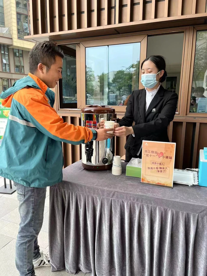 Many residential quarters including Hangzhou Yunheting Zhuxuan and Xixuan, The City Star, Binjiang Noble Lake, Jiangnan Star, Yupinwan, Riviera Mansion, etc. gave a positive response to the call and quickly built courier stations with their own characteristics. All these courier stations offer tea and drinks fit for autumn, candies, portable power banks or sockets, and chairs for couriers to have a rest at any time.