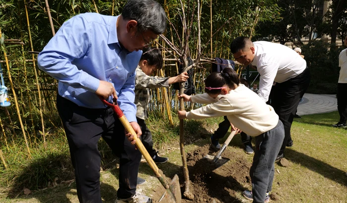 Together with the community, the proprietor committee and proprietors, the service center of Hangzhou Lansong’aofu organized the tree planting on March 11th. To further diversify the flower colors and fruit varieties, the service center and the proprietor committee selected over 20 seedlings including China rose, peach trees, Japanese maple, and hawthorn trees, among which the China rose and Japanese maple were personally offered by Yang Jun, the deputy director of the proprietor committee.