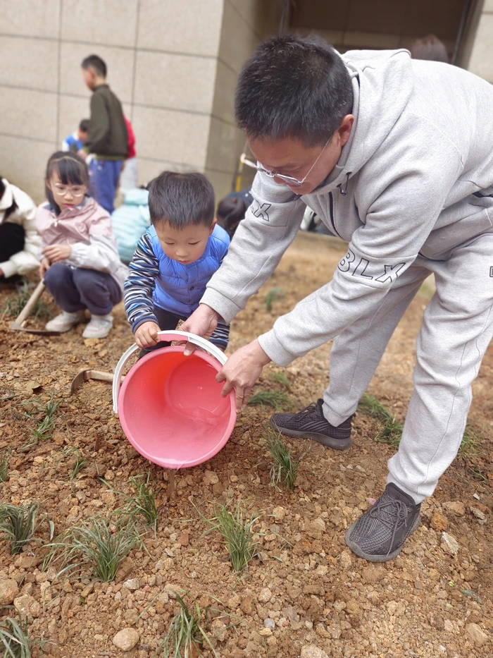 16 families, mostly three-member but also two-child families, participated in tree planting that very day. Every link of tree planting including cleaning up the environment, digging holes, planting, straightening up seedlings, and watering requires a lot of manual work. But the tree planters were energetic and enjoyed the pleasant tiredness brought by tree planting. The kindergarteners were very excited first experiencing tree planting and wished the trees to grow up quickly while watering. “They will grow into big trees when you are grown up,” said a property management worker. Nothing’s better than seeing children planting, watering, and hanging nameplates with their parents. The proprietor committee planted a hawthorn tree and a peach tree, both of which are poetic and carry people’s yearning for a better life.