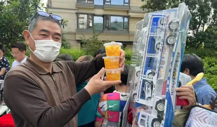 On May 14th, the Mother’s Day, most mothers in Hangzhou Haiyujinghua received carnations or roses from Binjiang Property. The property management played something new during the flea market that day. They set up a one-yuan stall to sell flowers in cups as a special Mother’s Day event. Flowers in cups were all freshly made on site, and 400 carnations and roses were quickly sold out within only an hour. The goldfish, popcorn, and cotton candy stalls set up by the property management staff were also very popular with proprietors.