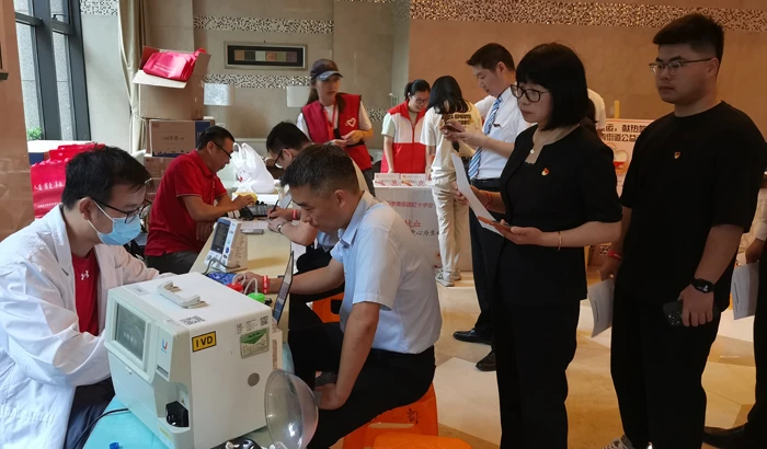 At 8:00 am, Party members lined up at the blood donation site. They conscientiously followed the blood donation rules, carefully filled out relevant forms, and underwent the physical examination to make sure that they met the blood donation requirements. During blood donation, Party members maintained a good mental state and showed a strong sense of responsibility and great love for society. Zhao Jun, office director of Binjiang Group, and Guo Chunlan, secretary of Binjiang Property’s Party branch committee, visited Party members at blood donation site and sent solicitude and concerns from the Party organization.