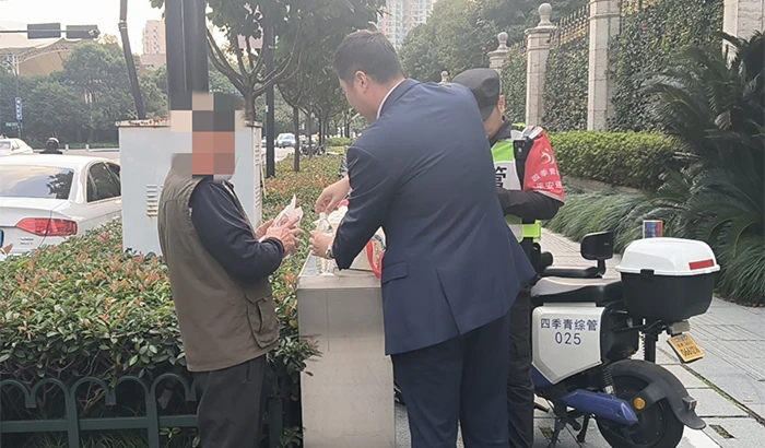 物业人员给老人买来了面包和饮用水,一直陪伴老人,等待家属来接。老人家属赶到后,他们感谢滨江物业,急人之所急,助人于危难。