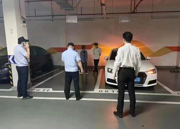 今年9月26日凌晨3时10分,王亚龙在小区地库例行巡查,发现一辆白色奥迪车的尾灯异常亮起,这让他立刻警觉起来。