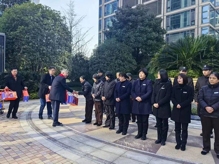 除夕慰问坚守一线的员工,是滨江物业的一贯传统。在乙巳蛇年即将到来之际,滨江物业董事长余忠祥关心奋战在春节岗位上的一线物业员工。